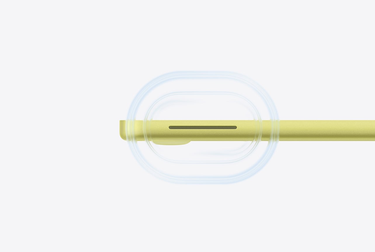 Mikrofone und Lautsprecher. Zwei Side-Firing Lautsprecher liefern immersiven Sound. Und die Mikrofone isolieren und verstärken deine Stimme für einen kristallklaren Klang.
