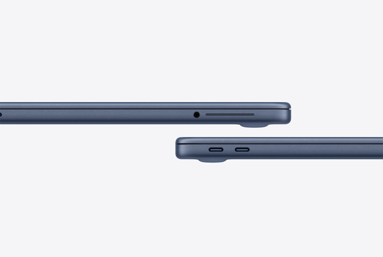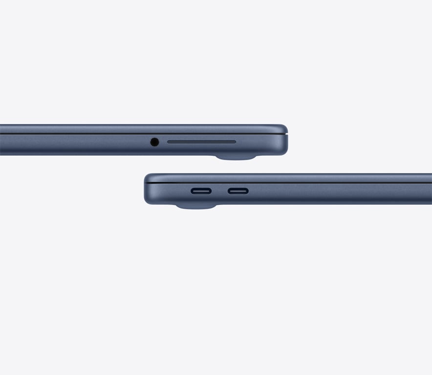 Konnektivität. Mit zwei USB‑C Anschlüssen und einem Kopfhöreranschluss kannst du Zubehör verbinden, Daten übertragen und dein MacBook Neo laden.